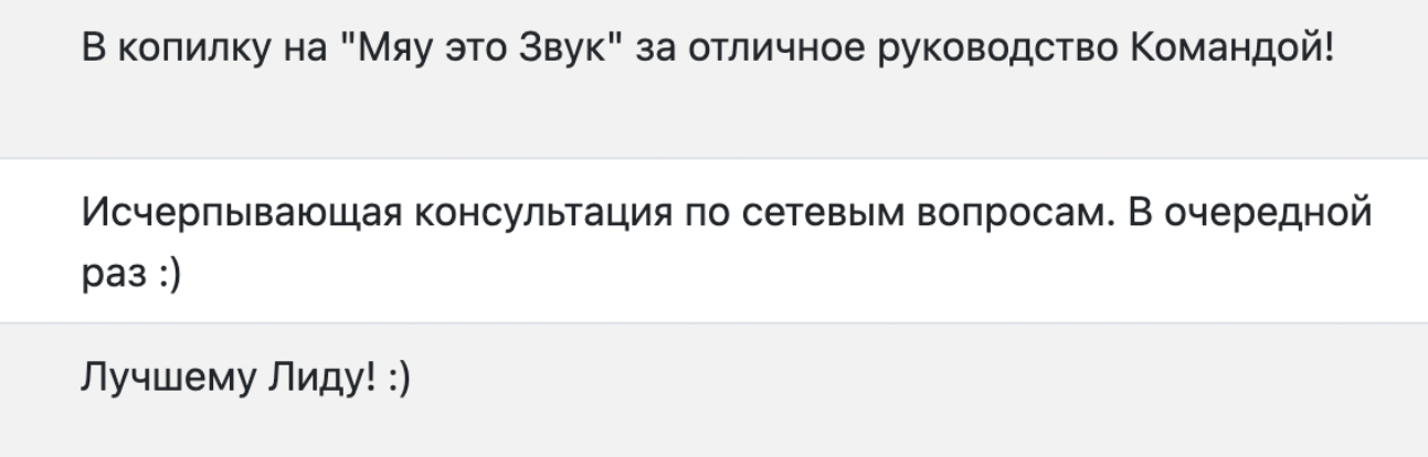 С ростом продукта и числа сотрудников нам захотелось объединить тех, кто давно работает в компании, и погрузить в культуру новых ребят. Нашей задачей было придумать для них удобный и быстрый способ персонально сказать: «Коллега, ты такой классный, спасибо за помощь и экспертизу!». Мы хотели прокачать культуру благодарности в командах и заодно укрепить связь между сотрудниками разных отделов.