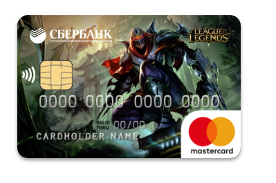 Сбербанк начал выпуск карт системы MasterCard с киберспортивным дизайном. На картах изображены чемпионы League of Legends.