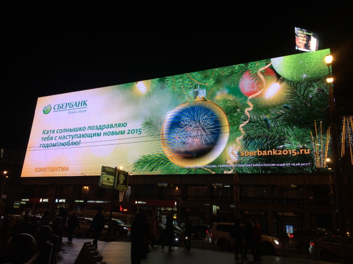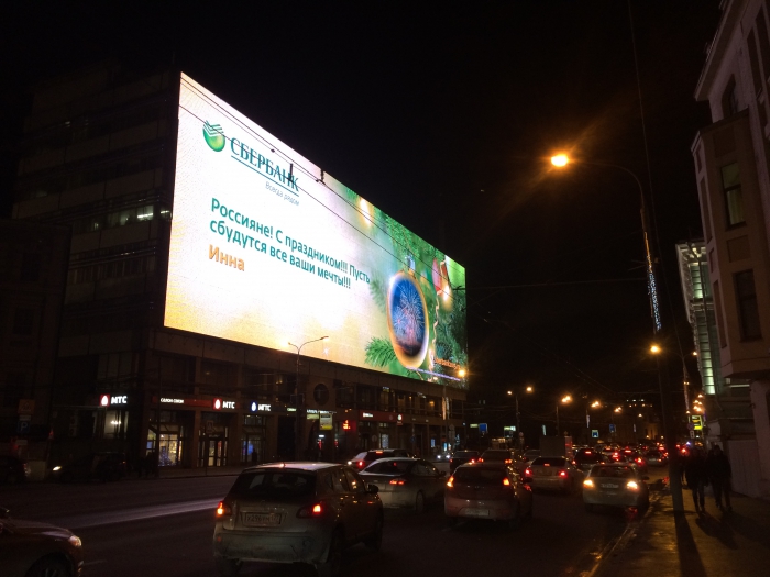 Сбербанк предлагает всем желающим поздравить близких с Новым годом на огромном интерактивном экране в Москве и на самой большой новогодней елке в России. Все собранные пожелания каждый день будут превращаться в настоящие огни на праздничной гирлянде. Креативная концепция была разработана агентством McCann Moscow (АДВ) и реализована агентствами Maxus (GroupM) и Adwizard.
