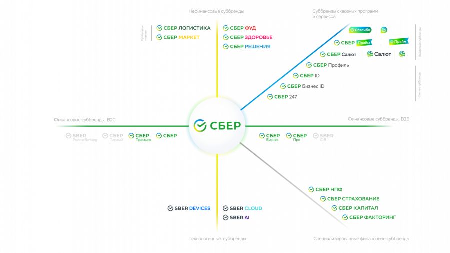 Быстрый рост экосистемы требовал нового подхода к организации растущего портфеля брендов. В то же время у клиентов компания ассоциировалась в большей степени с финансовыми услугами. Поэтому мы с командой маркетинга и управления «Сбербанка» начали работу над трансформацией бренда.