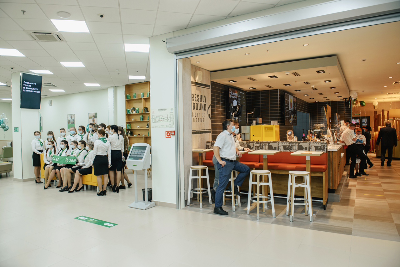 Клиенты получат «бесшовный» доступ к сервисам и продуктам McDonald's и «Сбера». Два зала имеют общую зону ожидания и коворкинга, которые позволяют легко попасть из одного предприятия в другое. В зале McDonald's расположен киоск экосистемы «Сбера», где представлены ее ключевые цифровые продукты: «Сберпрайм», Okko и «Сбермаркет».