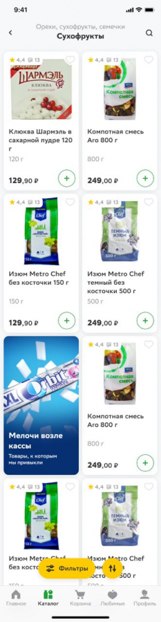 Мы принципиально поменяли сетку рекламных мест в приложении и на сайте, запустили новые форматы и увеличили количество рекламных мест. Но для самого пользователя «СберМаркета» это осталось незаметным. Благодаря таргетингу он видит только подходящие предложения — тем, кто покупал товары для кошек, не будут показывать объявления с кормом для собак. В результате сохраняется баланс между интересами пользователя и запросом рекламодателя.