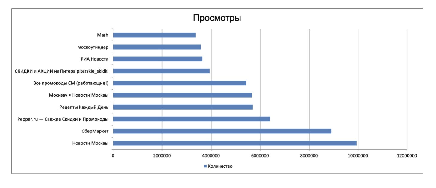 Самыми популярными Telegram-каналами, где упоминались сервисы доставки, стали «Новости Москвы», «Pepper.ru — свежие скидки и промокоды» и «Рецепты каждый день». Также в список вошли «Москвач. Новости Москвы» и «Все промокоды СМ (работающие)».