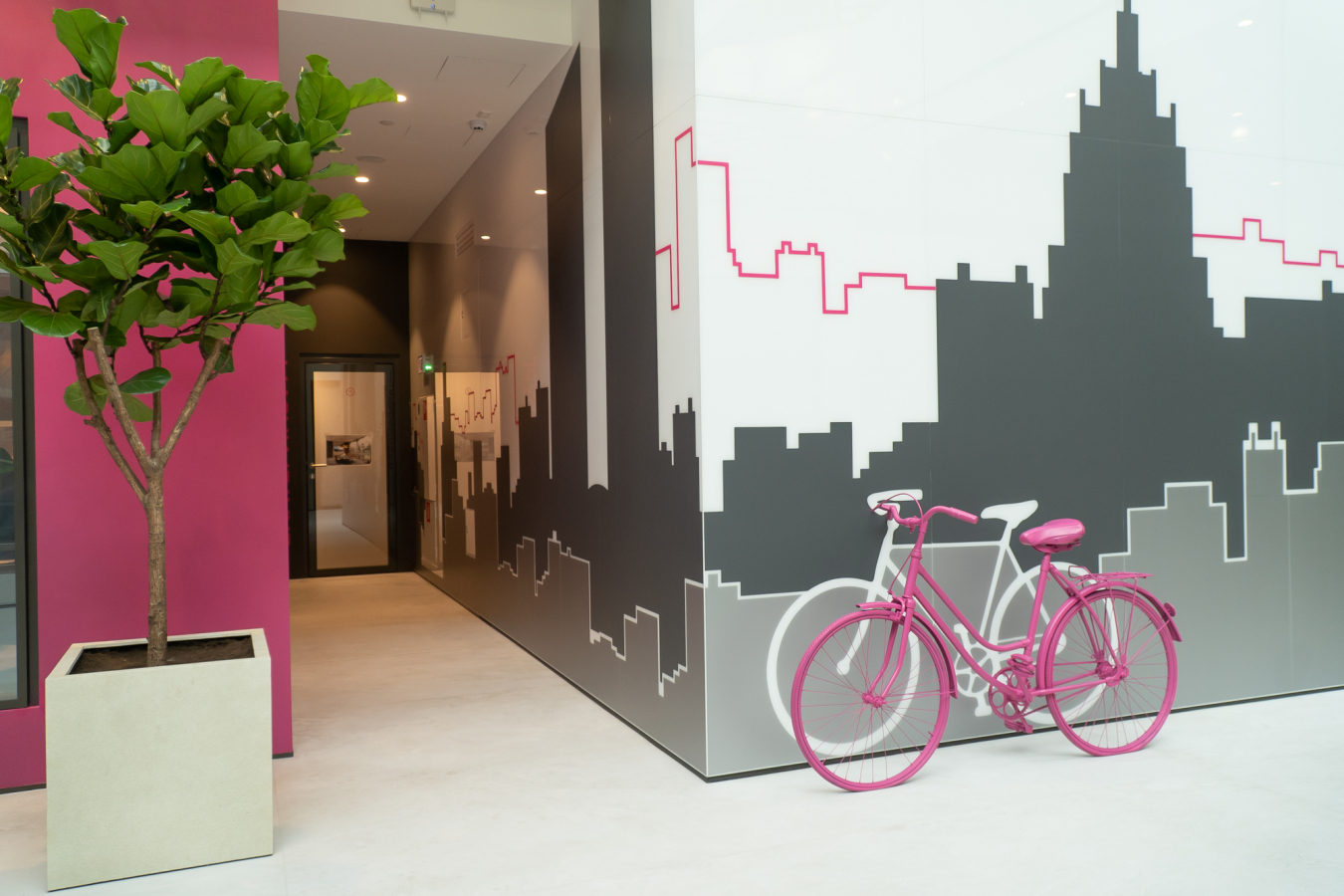 Большой озелененный атриум добавляет ощущение простора, а велосипедные дорожки следуют трендам современных мегаполисов. В нем также нет привычной линии обслуживания и зоны ожидания, теперь банкоматы узнают по улыбке.
