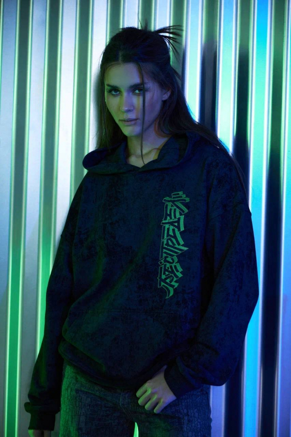 При создании коллекции художник вдохновлялся азиатской культурой, сделав акцент на типографике. Так, написание слова «беспредел» получилось приближенным к начертанию иероглифов.