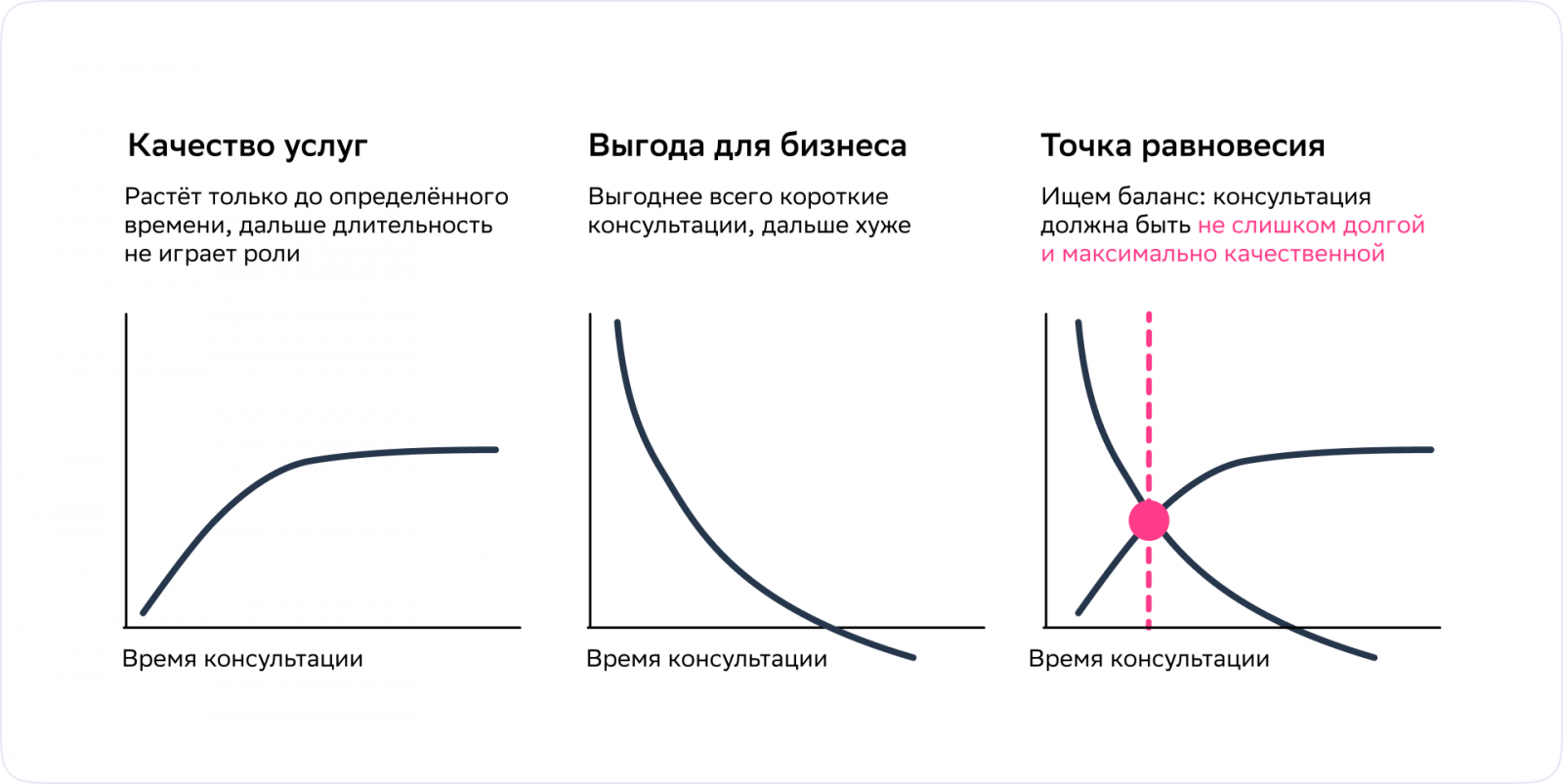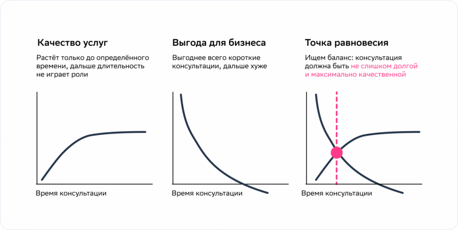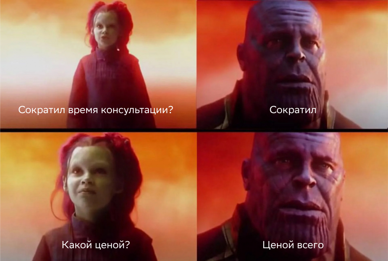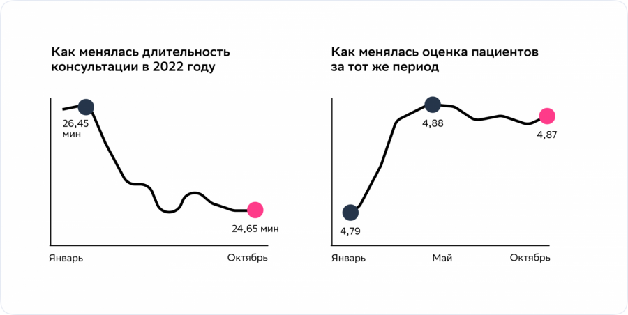Наша цель — не буквально «сократить время консультации», а «сократить ровно настолько, насколько это возможно без потери качества». В понятие «качество» входит как медицинское качество, так и сервисное.