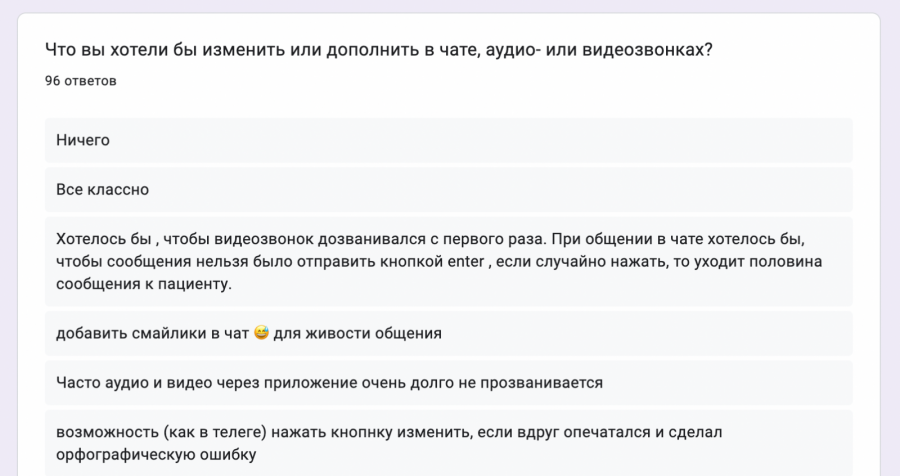 Чтобы лучше слышать врачей, каждую неделю мы проводим синки с медицинским блоком и вместе приоритезируем задачи. Устраиваем вот такие гугл-опросы и корректируем фичи после них: