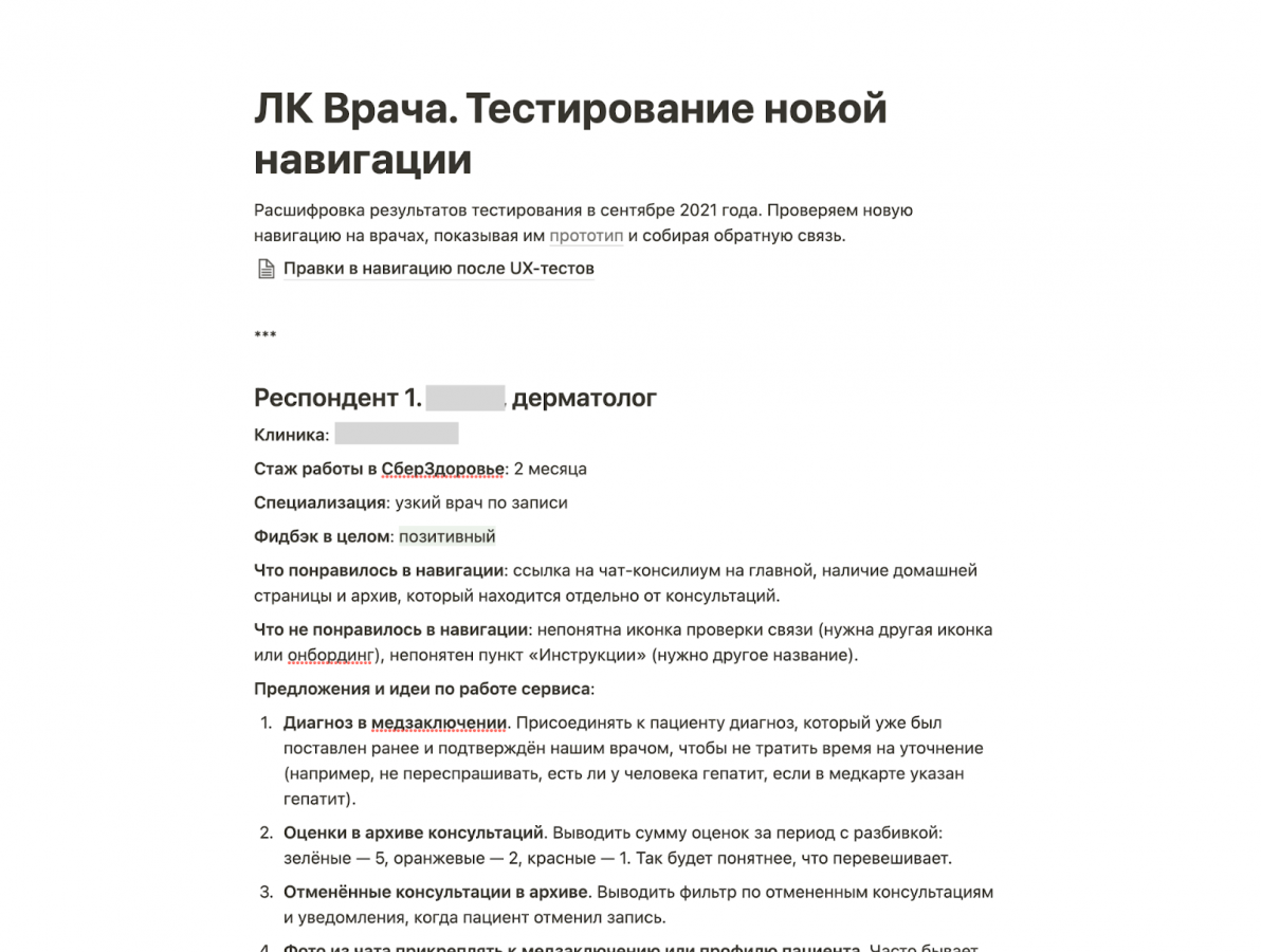 Также в нашей ситуации сложно проводить А/Б-тесты и количественные исследования — в «СберЗдоровье» сотни врачей, но пока ещё не тысячи, выборка зачастую не слишком велика. Поэтому мы сосредоточены на качественных исследованиях — проводим глубинки и опросы, анализируем отдельные случаи в «Яндекс Метрике».
