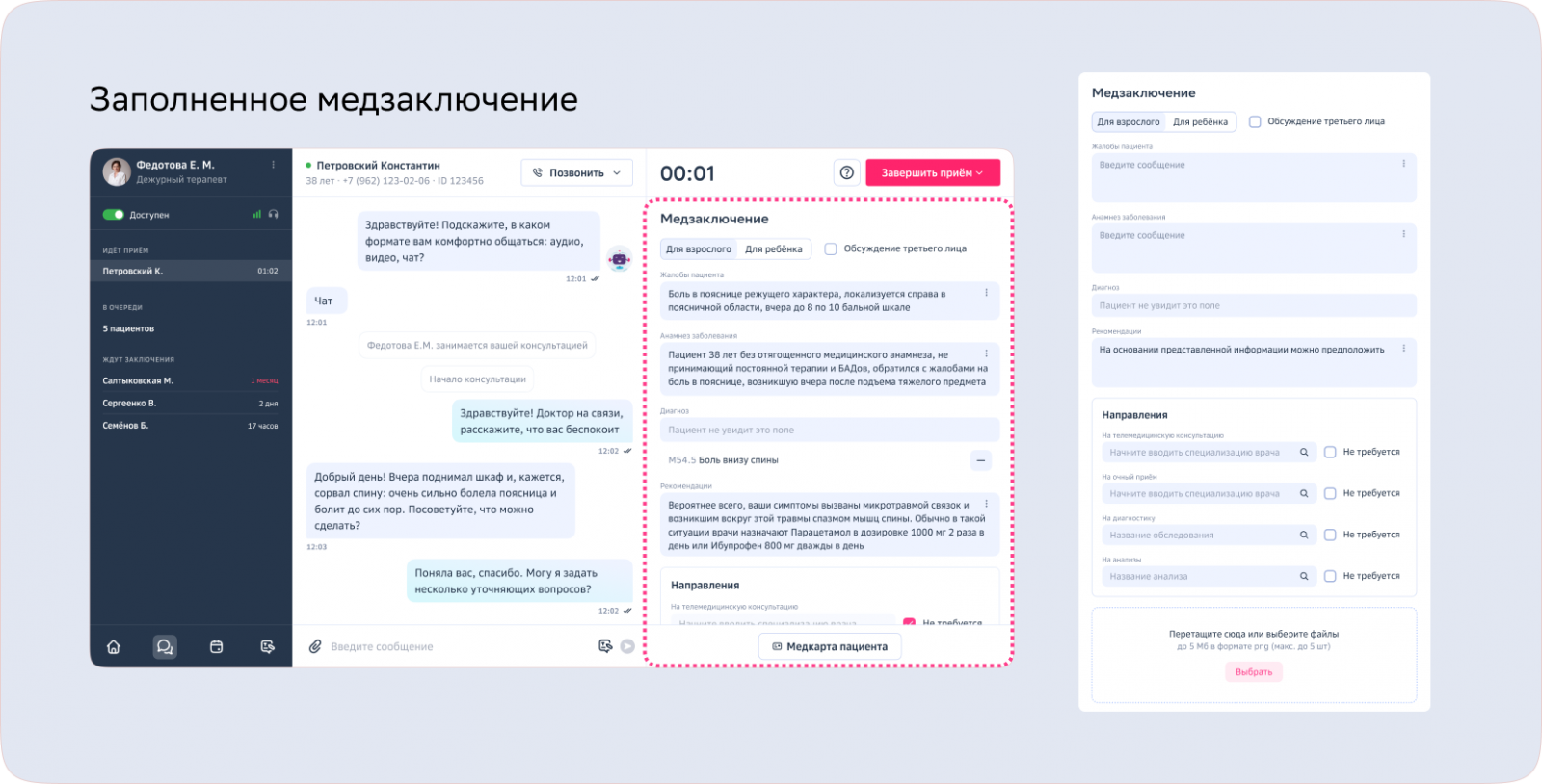 Важный момент: шаблоны не подменяют опыт и экспертизу врача, они просто экономят время. Не система решает, какой диагноз у пациента и как его лечить — это решает врач, а система просто упрощает заполнение полей.