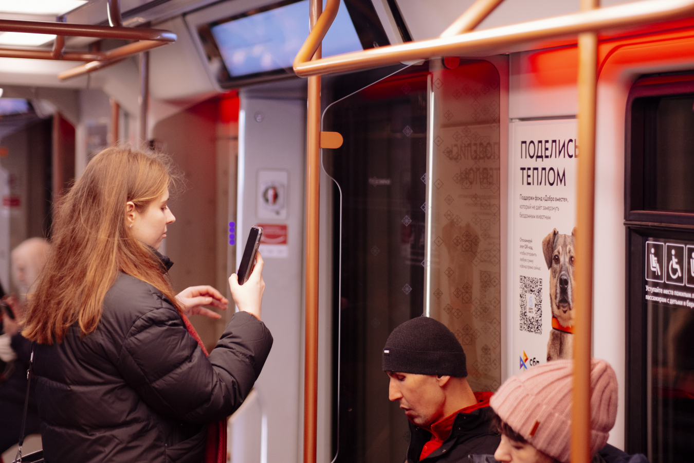 Призыв поделиться теплом транслируется на наружных носителях рекламы: его можно встретить на автобусных остановках, в метро, кофейнях, котокафе, парках и такси.