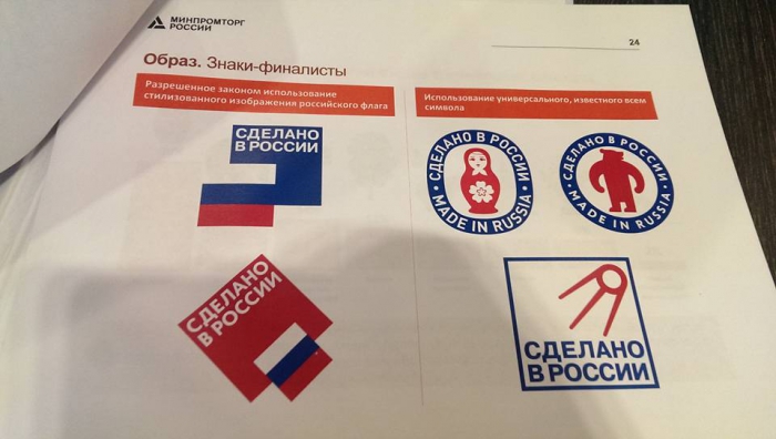 Знаки-финалисты проекта "Сделано в России", продемонстрированные Минпромторгом на закрытой презентации
