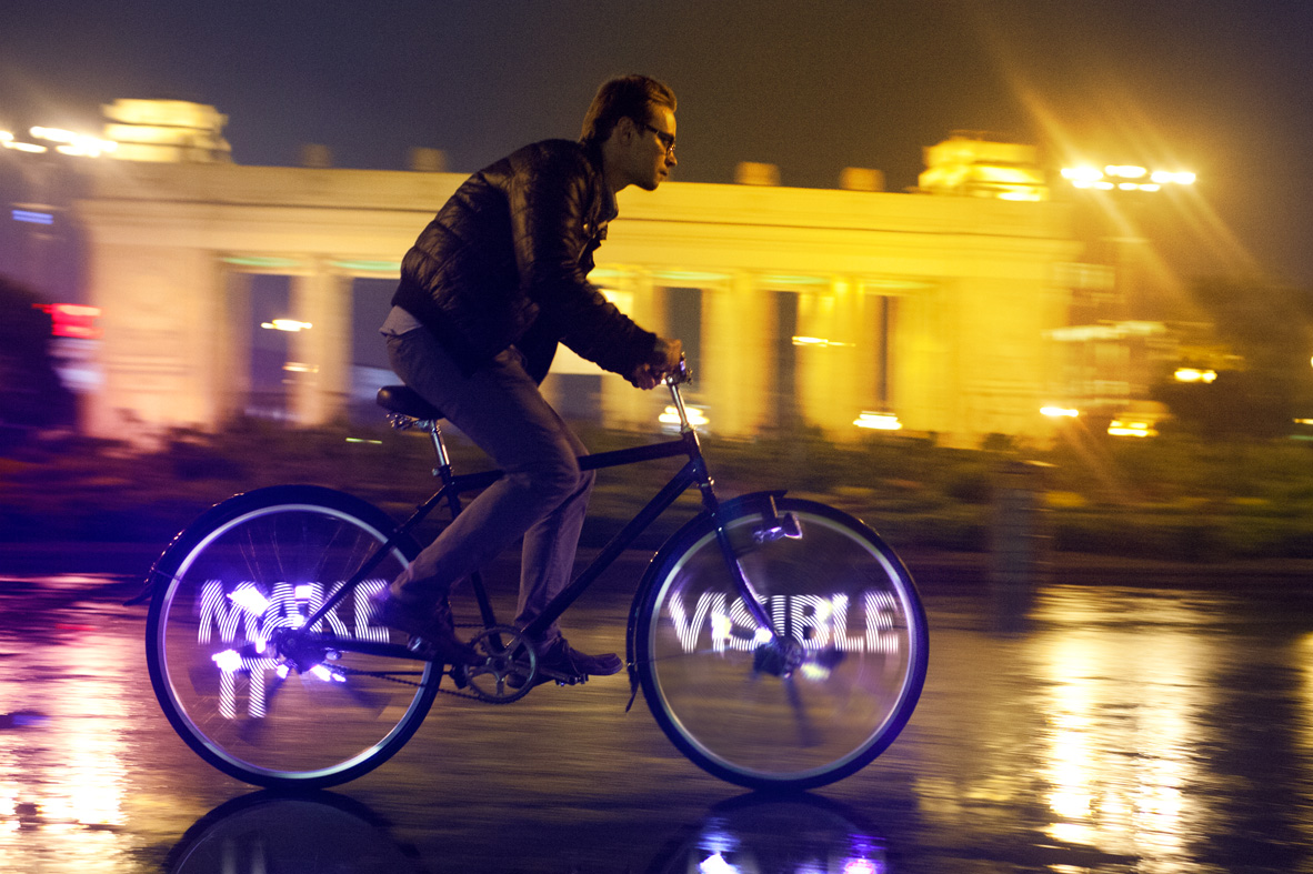 Чтобы показать окружающим, насколько важно быть видимым на дороге ночью, агентство Geometry Global запустило социальный проект Make It Visible. Несколько велосипедов были оснащены специальными светодиодными устройствами, подобные тем, которые установлены на новом SEAT Leon.