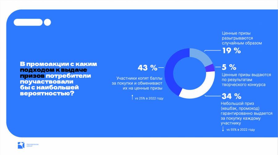При этом гарантированный приз в этом году потерял свою лидирующую позицию и переместился на второе место. Возможной причиной подобных изменений может быть активное развитие программ лояльности с постоянным начислением кешбэка от банков и ритейлеров, которые «размывают» ценность кэшбэка от бренда для потребителя.