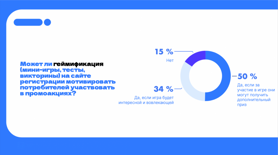 Геймификация в промо для каждого второго пользователя интересна, если она несет определенную призовую ценность. При этом каждого третьего можно зацепить увлекательным геймплеем.
