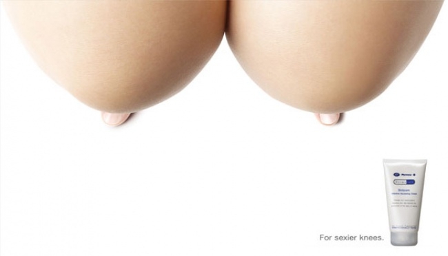 Неожиданный рекламный принт с идеей — это реклама увлажняющего крема для тела со слоганом «Для более сексуальных коленок».
