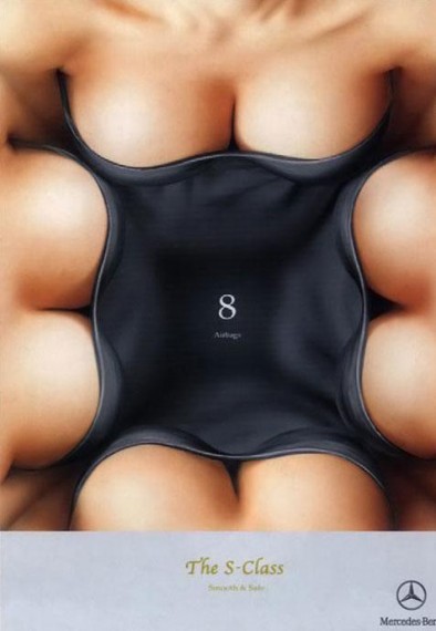 Автобренд Mercedes-Benz присоединился к другим концернам и в рамках продвижения модели S-класса показал 8 подушек безопасности в виде женских прелестей.
