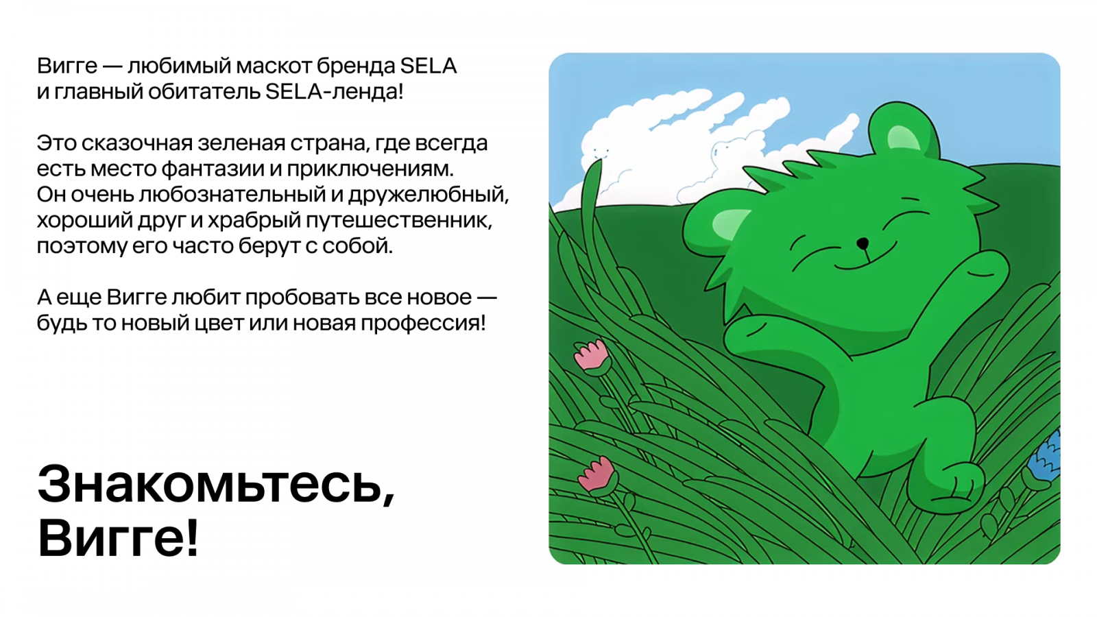 Бренд Sela поддерживает семейные ценности и регулярно запускает спецпроекты для детей. Один из них — «Вселенная Вигге», ориентированная на дошкольников и школьников. Маскот Вигге создан специально для общения с детьми, поэтому все инициативы строятся вокруг их интересов и игрового опыта.