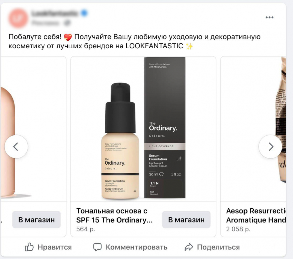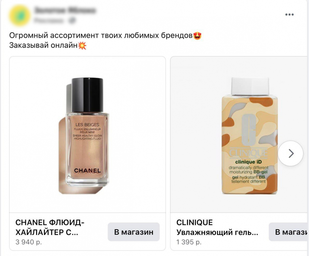 Благодаря акценту в карточках товара на трех главных для потребителя вещах — бренде, продукте и цене — нам удалось не только привлечь внимание пользователя в бесконечных лентах соцсетей, но и вернуть его обратно к покупке, с тем чтобы он ее совершил.