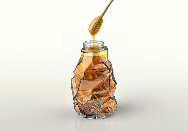 "На банку необычной тары вдохновил драгоценный камень алмаз, который внешне очень напоминает пирамидальные соты", - прокомментировали произведение дизайнеры.