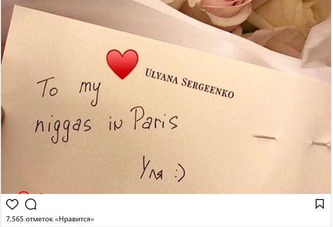 Российский дизайнер Ульяна Сергеенко отправила приглашение светскому обозревателю Мирославе Думе на свой новый показ в Париже. Мирослава Дума выложила в Stories в Instagram присланную подругой открытку, которая была подписана «To my niggas in Paris» («Моим ниггерам в Париже») и отсылает к песне Niggas in Paris Канье Уэста и Джей Зи. На девушек обрушились с критикой и обвинениями в расизме пользователи соцсетей, СМИ и представители модной индустрии. Девушки публично принесли извинения.