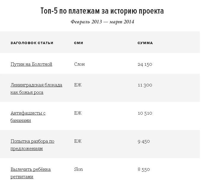 «Причина в том, что банк, через который мы осуществляли эквайринг (снятие средств) с карт пользователей, перестал подключать наших новых клиентов по «техническим причинам». Они совпали с началом кампании против Виктора Шендеровича, опубликовавшего на сайте нашего клиента EJ.ru известную статью про Олимпиаду.