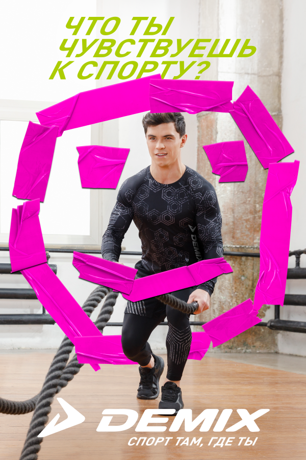 Эта идея ставит на первое место человека и его чувства. Поэтому прежде всего мы хотели показать приятные настоящие эмоции от спорта. А для того, чтобы связать это визуально с Demix, решили кастомизировать фотографии с помощью брендированного скотча — «клея» для всей визуальной концепции.