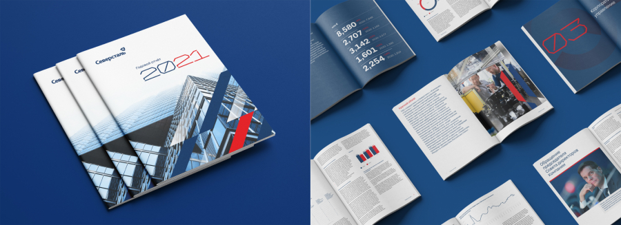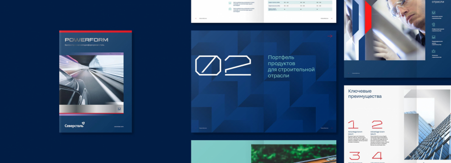 Динамику поддерживает новая суперграфика, которая приводит дизайн-систему в движение и символизирует прогресс и постоянное совершенствование. У супеграфики тонкая связь с русским авангардом. Как художники в начале прошлого века совершили прорыв в искусстве, так и «Северсталь» стремится стать лидером металлургии будущего и при необходимости выйти за пределы отрасли.