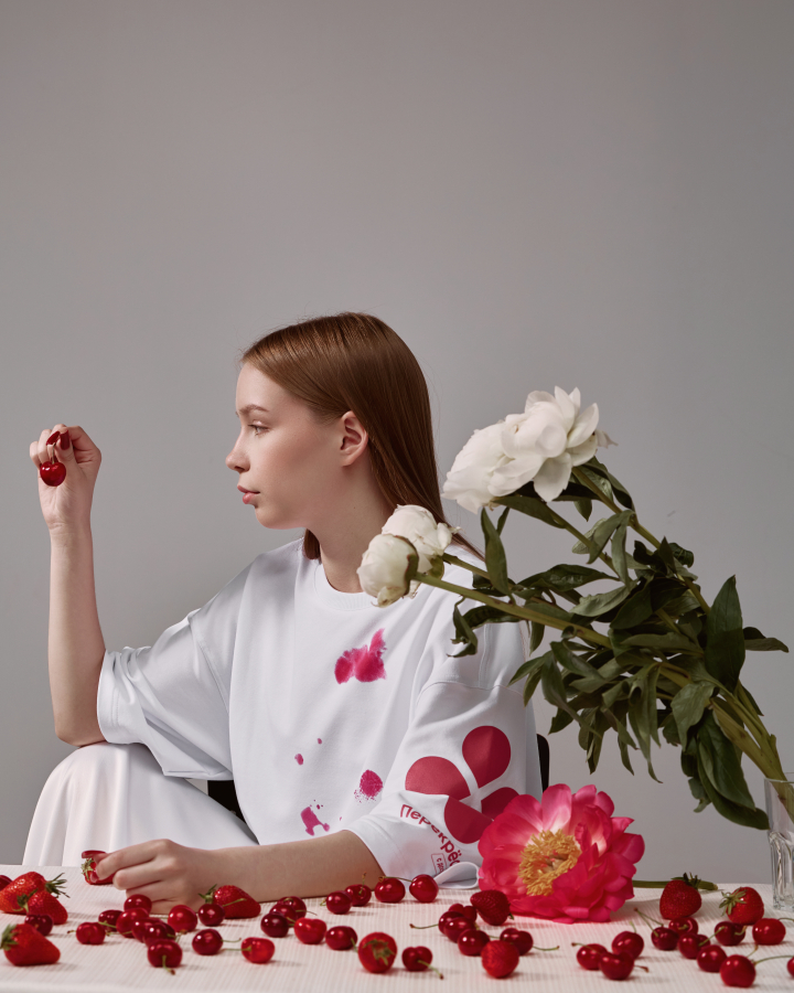 В преддверии лета сервис «Доставки Перекрёстка» представил продукт для самых преданных фанатов сезонных ягод — оверсайз-футболки с пятнами от клубники и черешни. Чтобы повторить их рисунок в принте, команда бренда протестировала несколько десятков обычных белых футболок.
