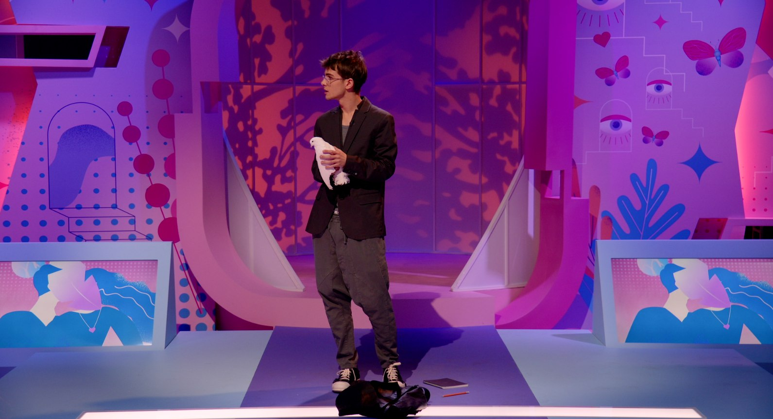 В центре сюжета — танцующий 3D-космонавт (а если быть точнее — это девушка-космонавт), который путешествует по измерениям. Образ отсылает к названию и айдентике RAKETAMEDIA. Проект объединил несколько технологий: прозрачную LED-сетку, волюметрический 3D-экран и лазербар. Создатели впервые синхронизировали контент на плоском и объемном экранах между собой, поместив прозрачный LED перед волюметриком.