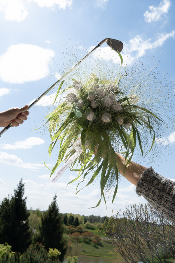 Открытие гольф-сезона 2025 в Skolkovo Golf Club стало поводом для яркой креативной коллаборации с флористическим салоном Amnesia. Специально к событию был создан арт-букет, вдохновлённый эстетикой гольфа и природным ландшафтом клуба. В его составе — трава паникум, произрастающая на территории поля, и желтые шаровидные краспедии, визуально отсылающие к гольф-мячам.