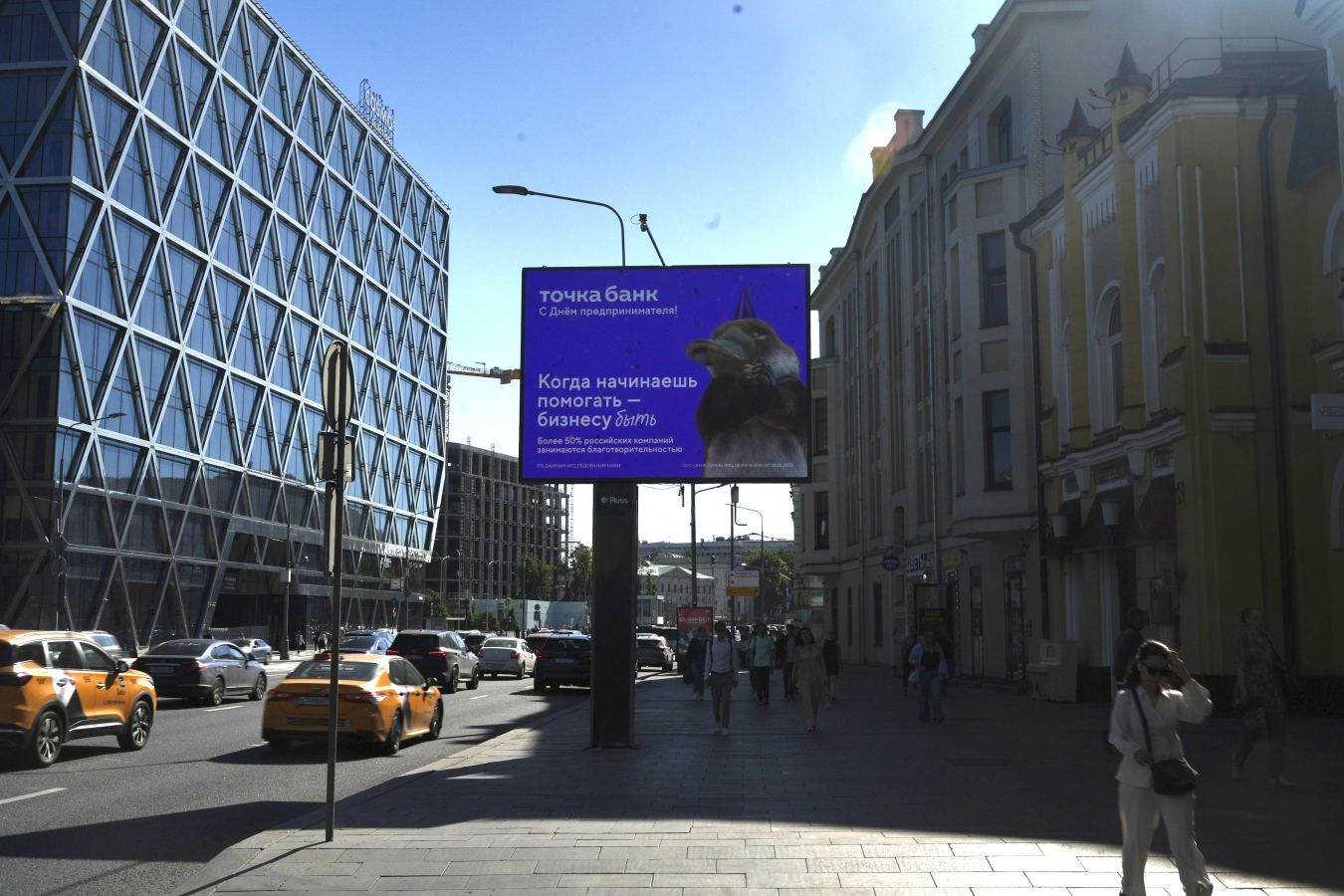 В День предпринимателя банк «Точка» запустил новую кампанию «Бизнесу быть!» — и вместо того, чтобы говорить от лица бизнеса, дал слово тем, кто его делает. Сотни фраз, которые видны с улиц, экранов и фасадов, — это признания и манифесты самих предпринимателей, которые появились одновременно на главных медиаэкранах в Москве, Санкт-Петербурге и Екатеринбурге. За креатив и реализацию отвечала команда РА «Восход».