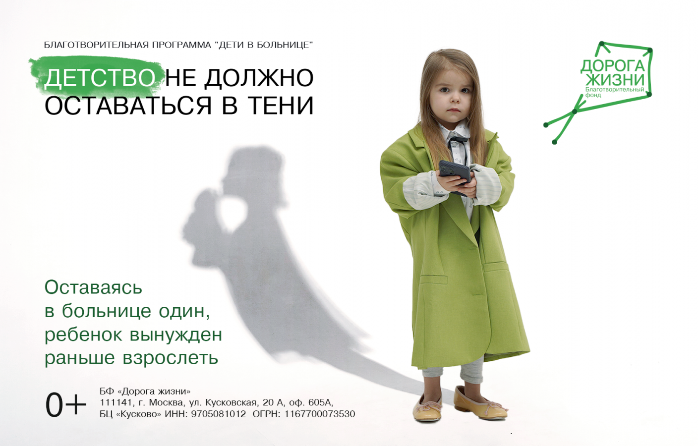 Благотворительный фонд «Дорога жизни» и агентство ZDRAVPUNKT by TWIGA CG запустили социальную кампанию «Детство не должно оставаться в тени» в поддержку детей, оставшихся без родителей в больницах.