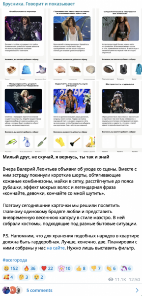 Еще один интересный момент — у «Брусники» нет KPI в виде лидов и продаж. Команда работает на репутацию, чтобы это когда-то конвертировалось в продажи. Классный Telegram-канал получится только в случае, если вы не гонитесь за лидами: не думайте только о конверсии, ничего хорошего не выйдет, уверен Сергей.