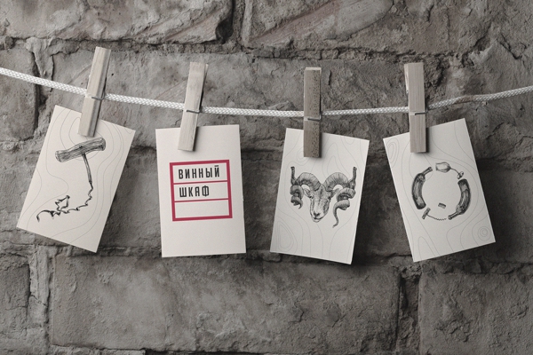 Агентство SHISHKI разработало эффектный фирменный стиль для петербургского винного бара под названием «Винный шкаф» компании «Любимое вино моей мамы».