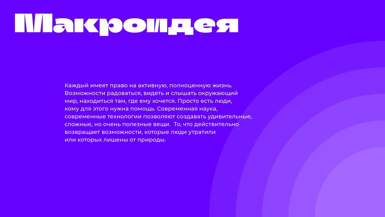 Первым делом мы выбрали макроидею: каждый имеет право на активную, полноценную жизнь. Но есть люди, которым нужна помощь. И современные технологии возвращают им возможности. И возвращает эти возможности «Круст».