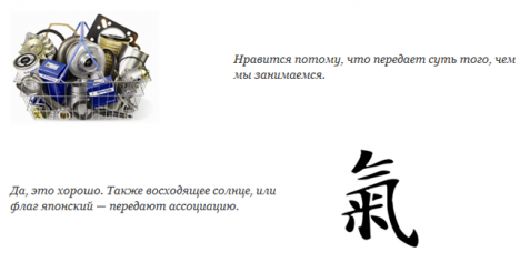 Логическая структура сайта была разработана руководителем проекта совместно с заказчиком. Кроме того, клиента попросили определить, какие слова лучше всего характеризуют проект. В результате получилось следующее: автозапчасти, японский, качественный, современный, понятный, доступный, открытый, интересный, прогрессивный.