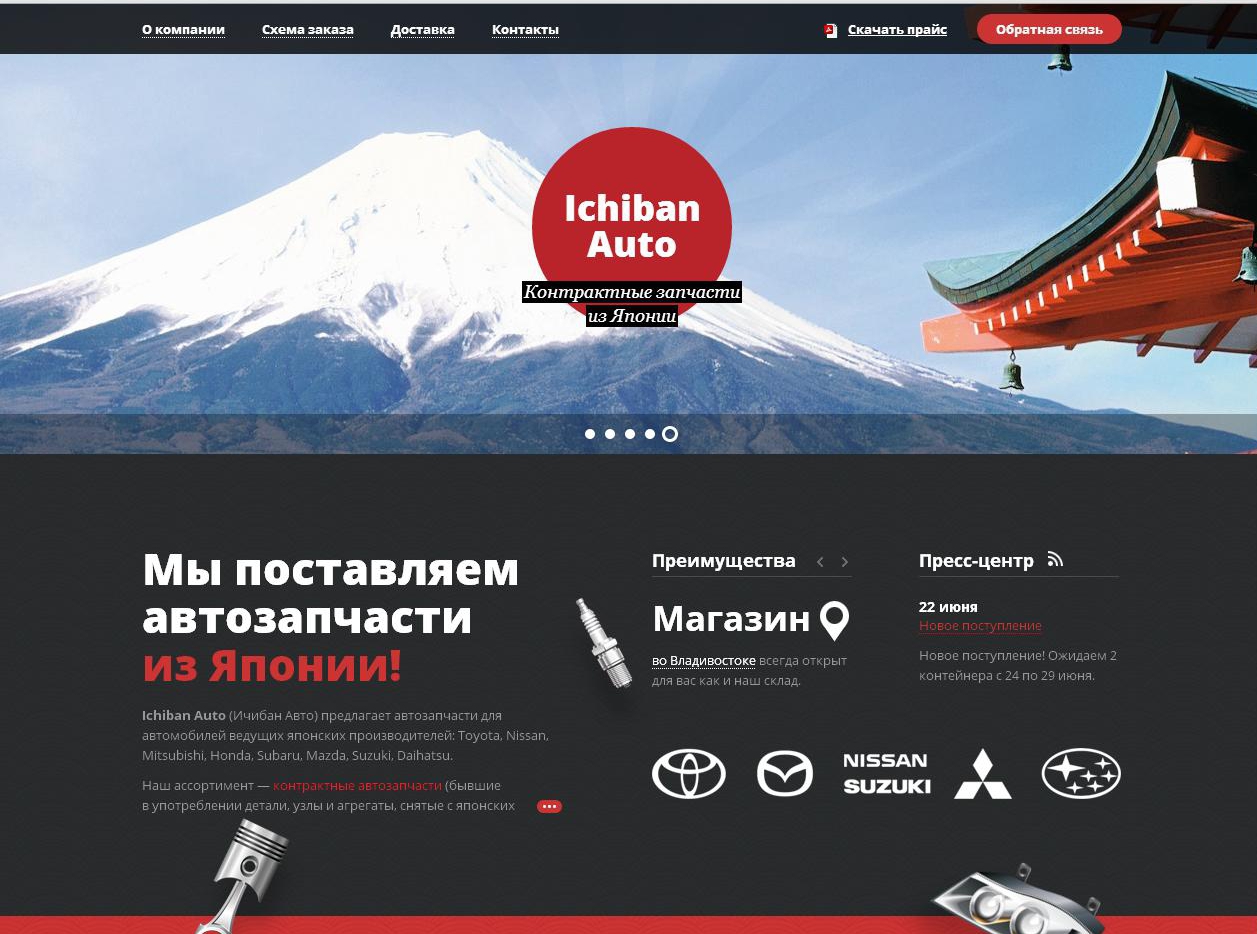 Scrum-студия «Сибирикс» разработала сайт для Ichiban Auto – компании, занимающейся поставками контрактных запчастей из Японии. Перед студией стояла задача создать сайт, на базе которого в будущем можно будет запустить онлайн-магазин.
