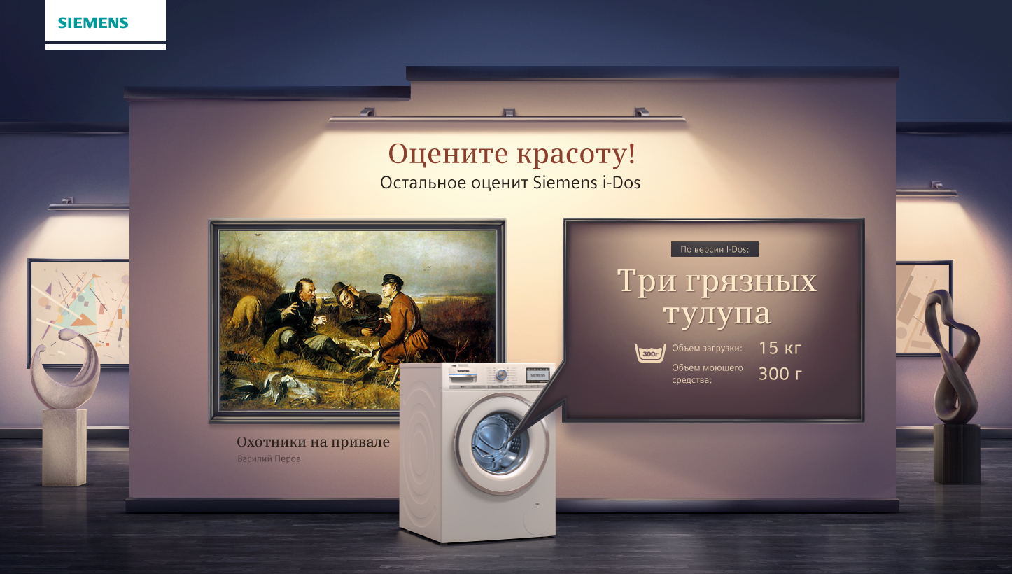 Немецкий производитель бытовой техники Siemens и агентство OMD Digital (входит в OMD OM Group) в новой цифровой коммуникации предложили взглянуть на шедевры живописи с точки зрения стиральной машины Siemens i-Dos.
