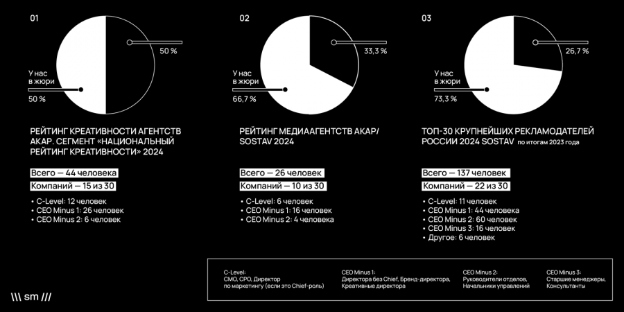 Состав жюри Silver Mercury 2025 — это не просто репрезентативный срез индустрии. Это — концентрат экспертизы. Мы проанализировали три ключевых рейтинга: крупнейшие рекламодатели России по версии Sostav, рейтинг медиаагентств АКАР/Sostav и рейтинг креативности агентств АКАР в сегменте «Национальный рейтинг креативности агентств». В жюри Silver Mercury вошли представители 22 из 30 крупнейших рекламодателей, 10 из 30 ведущих медиаагентств и 15 из 30 самых креативных агентств страны.