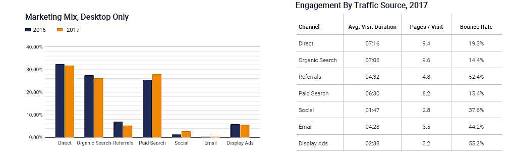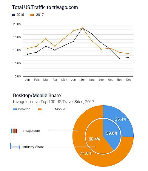 Примером может служить, например, сайт для поиска и бронирования отелей Trivago.com. несмотря на высокую конкуренцию, сервис смог найти новые способы увеличить трафик. В целом трафик сайта вырос по сравнению с 2016 годом на 10%, при этом компании удалось компенсировать падение реферального трафика благодаря увеличению инвестиций в платный трафик.