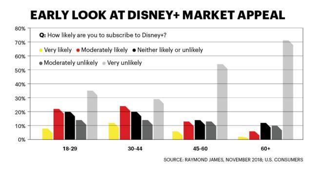 Пользователи уже проявляют интерес к Disney +. Согласно исследованию SunTrust Robinson Humphrey, 24% граждан в США, имеющих подписку Netflix, панируют дополнительно подключиться к Disney +, а 8% заменят свою подписку Netflix на Disney +.