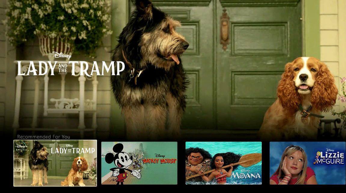 Изначально на сервисе будут представлены все эпизоды киносаги «Звездные войны», картины киновселенной Marvel, мультфильмы студии Pixar, а также фильмы и программы BBC о дикой природе и более 250 часов контента National Geographic. На старте будут доступны игровой ремейк «Леди и бродяги» и документальный фильм «Мир по версии Джеффа Голдблюма» (The World According to Jeff Goldblum).