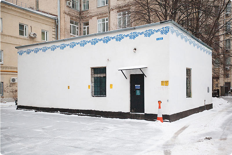 Студия Артемия Лебедева оформила московские центральные тепловые пункты, разработав для них декоративные бордюры в синий цветочек.