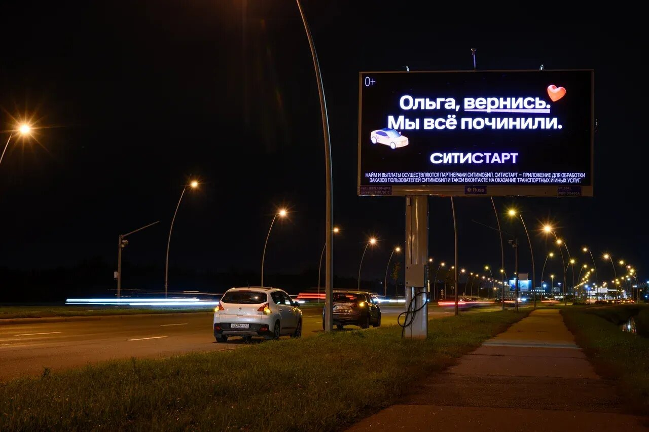 Также в поддержку «Ситистарта» компания разместила наружную рекламу — в Москве и в Санкт-Петербурге появились обращения к водителям с предложением о возобновлении сотрудничества. С помощью призыва «Водитель, вернись, мы все починили!» креаторы обыграли известный мем про Наташу и котов, которые «всё уронили».