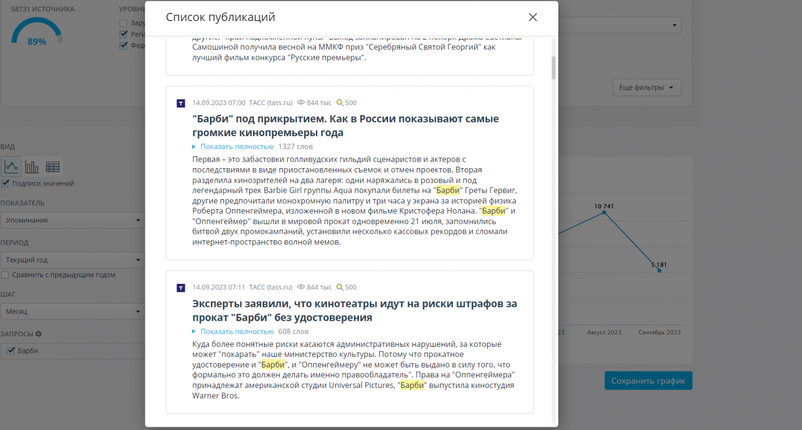 В топ-3 источника, которые больше всего писали о «Барби», вошли: