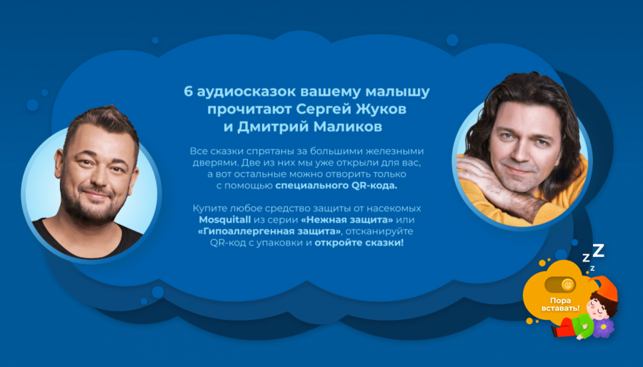 Изначально на странице спецпроекта были доступны к прослушиванию только две сказки. Чтобы открыть доступ к остальным аудио, необходимо купить продукцию Mosquitall и просканировать QR-код на упаковке.