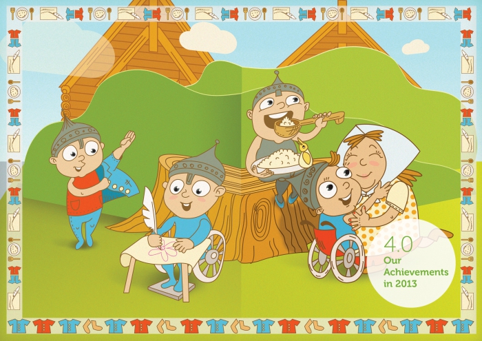 «На иллюстрациях дети, подопечные Фонда, изображены в образе маленьких богатырей, которые мужественно борются со своими болезнями, - прокомментировала концепцию автор проекта Евгения Агуреева, дизайнер и художник Arena Magic Box. – Болезнь мы показываем в виде Змея-Горыныча и Чудо-юдо рыбы-кита».