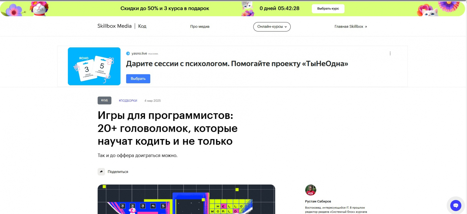 Бренд-медиа образовательной платформы Skillbox начало сотрудничество с рекламодателями — впервые на площадке стало возможно размещение баннерной рекламы. На старте доступны три формата: большой горизонтальный баннер над статьей, вертикальный баннер в начале текста и баннер по ширине внутри статьи. В ближайшее время медиа запустит формат спецпроектов. Об этом Sostav сообщил представитель Skillbox Media.