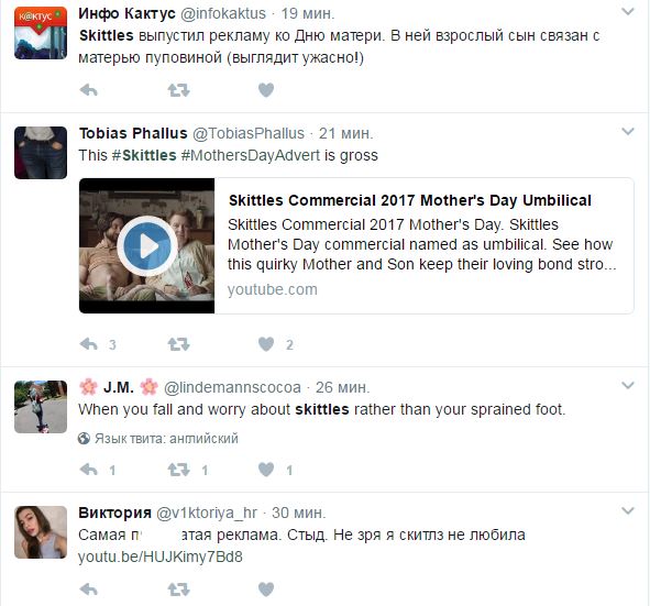 Профильные СМИ и пользователи соцсетей проявили удивительное единодушие, обозвав рекламу отвратительной. Skittles остается только надеяться, что у зрителей пропадет аппетит, а не лояльность бренду.
