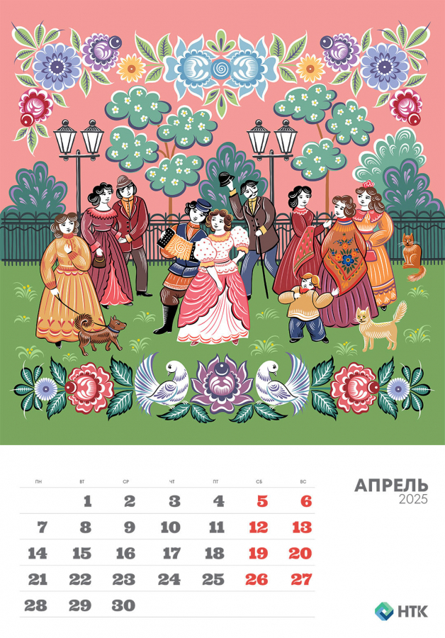 Брендинговое агентство «Март» совместно с художницей Ией Токаревой и каллиграфом Владой Ружицкой создали цикл иллюстраций для календаря Национальной транспортной компании. Работы, вдохновленные Кустодиевым и народными мотивами, представляют современную интерпретацию городецкой росписи. Пять сюжетов о праздниках и веселье, уникальный леттеринг на основе древнерусской письменности передают яркость и широту русской культуры. Подробнее на Sostav.